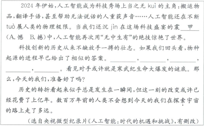 4. (2025·台州黄岩)阅读语段,完成下面题目。