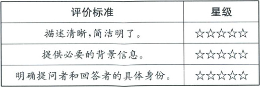 7.示例:问题二更合适。从评价量表来看,问题一只是简单地求引体向上满分技巧,描述相对单一。而问题二首先明确了提问者“初二学生”的身份;接着说明了“即将参加体育期末考试”的背景信息;最后提出求满分技巧的需求,既描述清晰,又提供了必要的背景信息、明确了提问者身份,符合评价量表中的多项标准,相比问题一更加全面、合适。