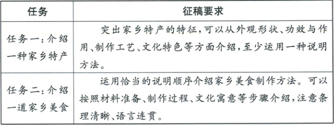 5. (2024·杭州钱塘)临近春节,为弘扬乡土文化,学校社团开展“我为家乡代言”征稿活动。请你任选一项任务参加投稿,不超过 140 字。