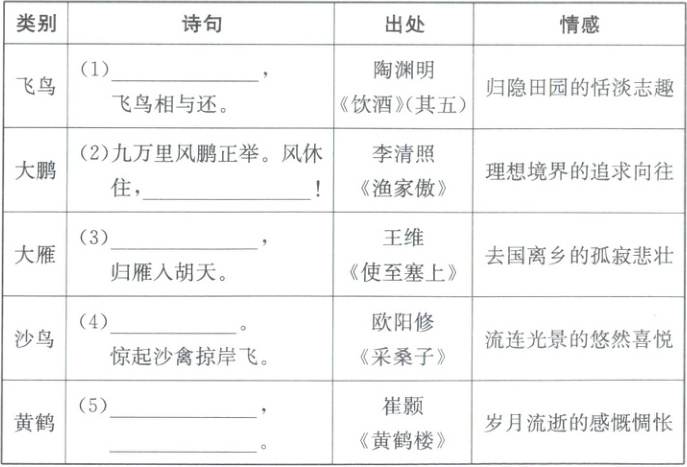 8. (2025·松阳)寻找古诗文中的“飞鸟”,同学们收集了相关古诗词名句,请完成填空。
