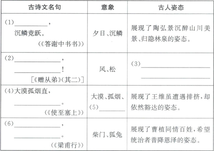 (3)展现了松树在狂风中坚强不屈的姿态,也体现了作者对刚正坚贞品格的追求。