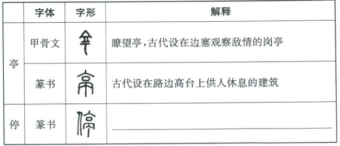 8. (2024·台州黄岩)古代很多文字望其形便可知其意。请结合表格信息解释“停”字的含义。