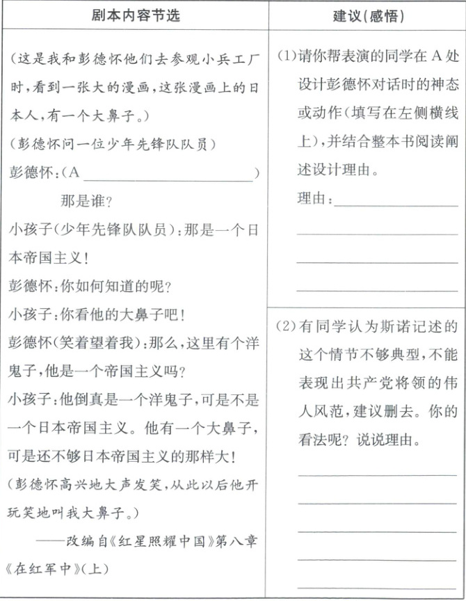 10. (2025·金华金东、兰溪、浦江)课本剧表演,801班准备演的是《红星照耀中国之彭德怀》,请阅读剧本节选部分后完成相关任务。