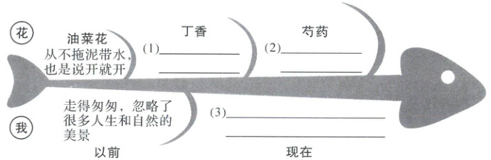 1. 阅读全文,梳理“我”眼中花的独特个性和“我”的心境变化,补全下面的思维导图。