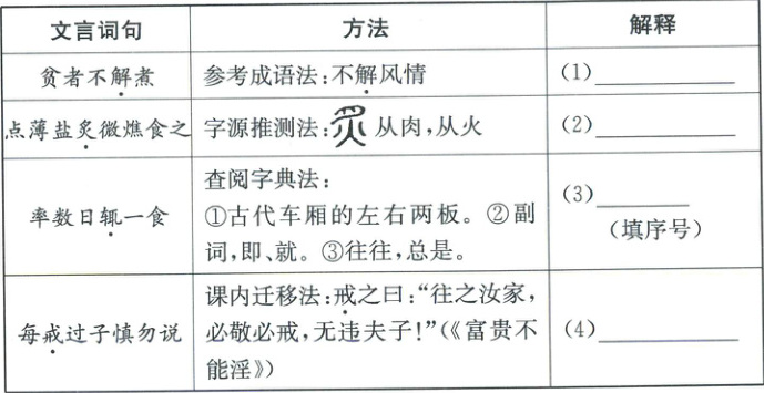 1. 根据提示方法,解释句中加点词。