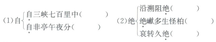 (2)古:即使 今:虽然 5.这两地之间相隔一千二百里,即使骑上快马,驾着疾风,也没有这么快。 6.从听觉角度写景,描写了三峡秋天的凄清,渲染了一种凄凉的气氛,使人感到无限的悲凉。