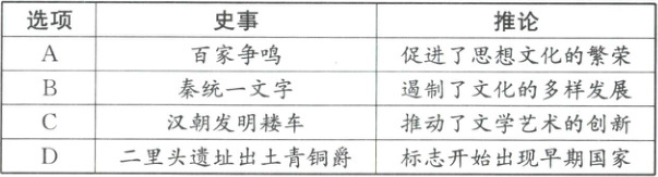 18. (2025·乐清)正确的历史推论离不开对史事的准确解读。下列推论与史事相符的是 (