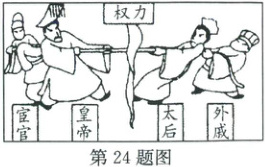 24. (2025·台州路桥)右侧漫画反映了中国某个朝代中后期统治阶级内部争权夺利的斗争,这一朝代是 (