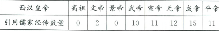 (2)根据材料概括西汉集议时所引用儒家经传数量的变化,并结合所学说明原因。(2 分)