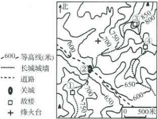 (2)判断①~②、②~③、③~④三段长城,坡度最缓的是