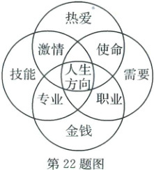 22. 人生价值韦恩图是一种心理学工具,可用于帮助个人识别和理解自己的核心价值观,从而确立目标并做出可行的职业生涯规划。晨晨通过此方法确立了自己要从事“大数据模型商业智能开发”工作,并决定为之付出不懈努力。这告诉我们 (