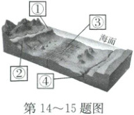 2024 年 6 月 8 日是第 16 个世界海洋日。我国是海洋大国,加快海洋资源开发和海洋强国建设是我们的历史使命。结合“海底地形示意图”,完成第 14~15 题。