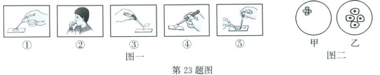 23. 某同学在实验室制作人口腔上皮细胞临时装片和洋葱鳞片叶内表皮细胞临时装片,并观察相应的细胞结构。请分析回答问题。
