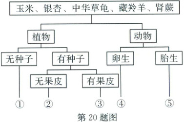 20. 2024 年 3 月 3 日是第 11 个“世界野生动植物日”,某同学将部分野生动植物进行了分类(如图所示),请结合所学知识回答以下问题。