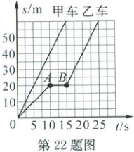 22. 甲、乙两辆车在平直的路面上运动,它们通过的路程随时间变化的图像如图所示。分析图像可知: