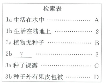 (3) 该同学对上述四种植物编制了检索表,检索表中 $2b$ 的“?”处要填写的内容是