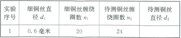 ②数出$d_1 = 0.6$毫米的细铜丝缠绕的圈数为$n_1$,另一种细铜丝缠绕的圈数为$n_2$。