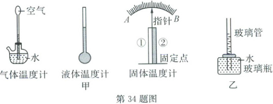 34. (4 分)某校科学兴趣小组开展“自制温度计”的项目化学习。