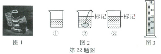 22. (2025·宁波海曙)2024年2月到5月期间,三星堆金沙古蜀展览在上海博物馆举行。如图1是最受欢迎的三星堆黄金面具模型,小科想用实验的方法来测量它的体积。