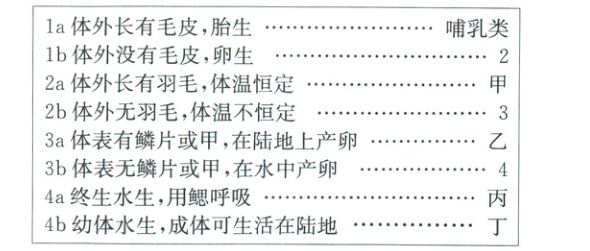 14. (2025·东阳)扬子鳄是国家一级保护动物,请利用这张“脊椎动物检索表”,鉴定出扬子鳄对应的位置是(