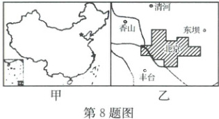 8. (2025·嵊州)右面为图幅相等的甲、乙两幅地图,下列说法正确的是(