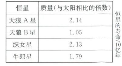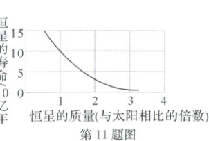 11. (2025·杭州余杭)恒星的寿命是指恒星从形成到灭亡所经历的时间,这取决于多种因素,质量是影响寿命的主要因素。结合图表信息,推测四种恒星中寿命最长的是(