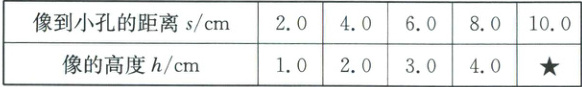 移动蜡烛使像移到光屏中央。(3)在进行实验时,发现蜡烛和小孔的位置固定后,移动内筒改变半透明纸离小孔的距离,像的大小会发生改变,于是他测出了小孔到半透明纸的距离不同时像的高度,填在表格中,分析表中数据,“★”处的数值是