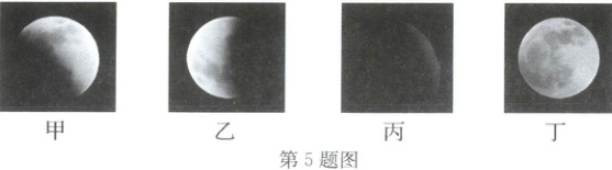 5. (2025·宁波江北)2022年我国大部分地区经历了一次月全食,而且是罕见的“超级红月亮”。下图是小宁拍摄的月全食照片,下列对月全食过程的排序,正确的是(