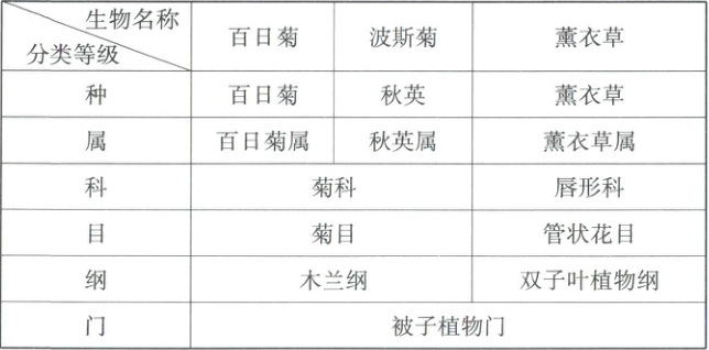 1. (2025·东阳)百日菊、波斯菊、薰衣草的分类关系如表所示,以下叙述正确的是 (