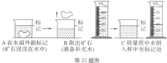 (1)在实验室找了一块形状不规则的矿石。因矿石体积较大,他按下图从 A 到 C 的操作过程进行测量,求出矿石的体积为