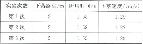 ②从一定高度自由释放纸锥,同时开始计时,当纸锥落到地面时,结束计时。重复三次操作,数据记录如表: