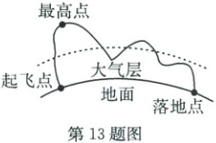 13. 我国东风导弹成功试射,运行的轨迹如图所示,下列说法错误的是(