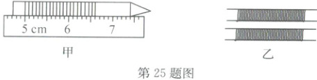 25. (6 分)小科买了两卷规格不同的甲、乙铜丝,甲铜丝直径 $ d = 0.5 $ mm,乙铜丝的产品说明标签已脱落。小科采用以下方法测量乙铜丝直径,步骤如下: