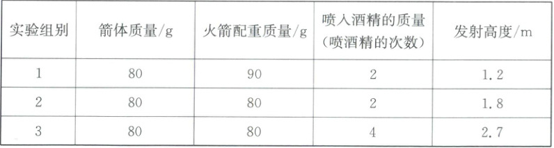 (3)喷入酒精的质量越大,火箭发射高度越高