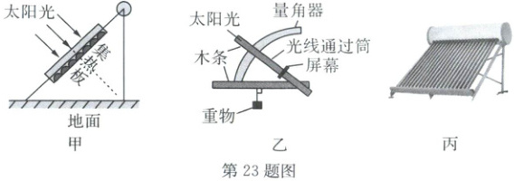 23. 正午太阳高度会随季节而变化,为了取得良好的吸热效果,太阳能热水器吸热面要始终与正午太阳光保持垂直,如图甲所示。