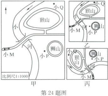 24. 图甲是某动物园平面图,读图并回答下列问题。