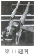 11. 如图,2024 巴黎奥运会跳水女子双人十米台决赛中,中国组合全红婵、陈芋汐夺得金牌。有人形容她们的动作就是“复制粘贴,双人合一”。下列关于在跳水过程中的说法正确的是(