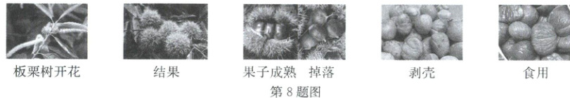 8. 板栗被有些人戏称为“像毛毛虫一样的果子”。如图是板栗的“旅行图”,由此你推测板栗树属于(
