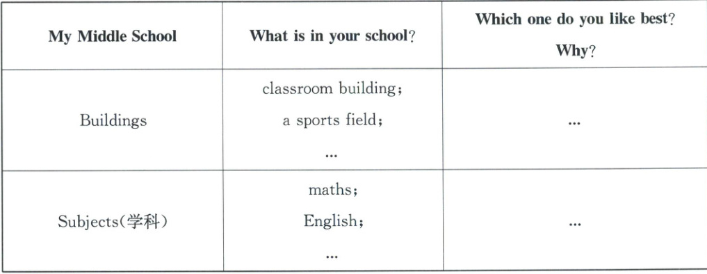 71. One possible version: My Middle School Let me talk about my middle school. My school is wonderful. There are many buildings like the classroom building and the sports field. We have different subjects such as maths and English. I like the sports field best because I love doing sports. The classroom building is also great, which provides a good environment for our study. I love my middle school.