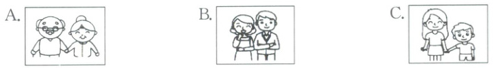 )4.A.(三个人的简笔画) B.(两个女孩的简笔画) C.(一个女孩和两个老人的简笔画)(