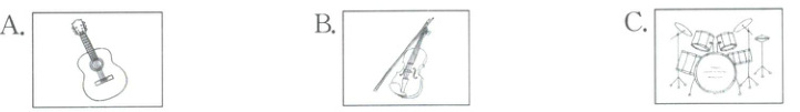 )3.A.(一个吉他的简笔画) B.(一个小提琴的简笔画) C.(一个鼓的简笔画)(