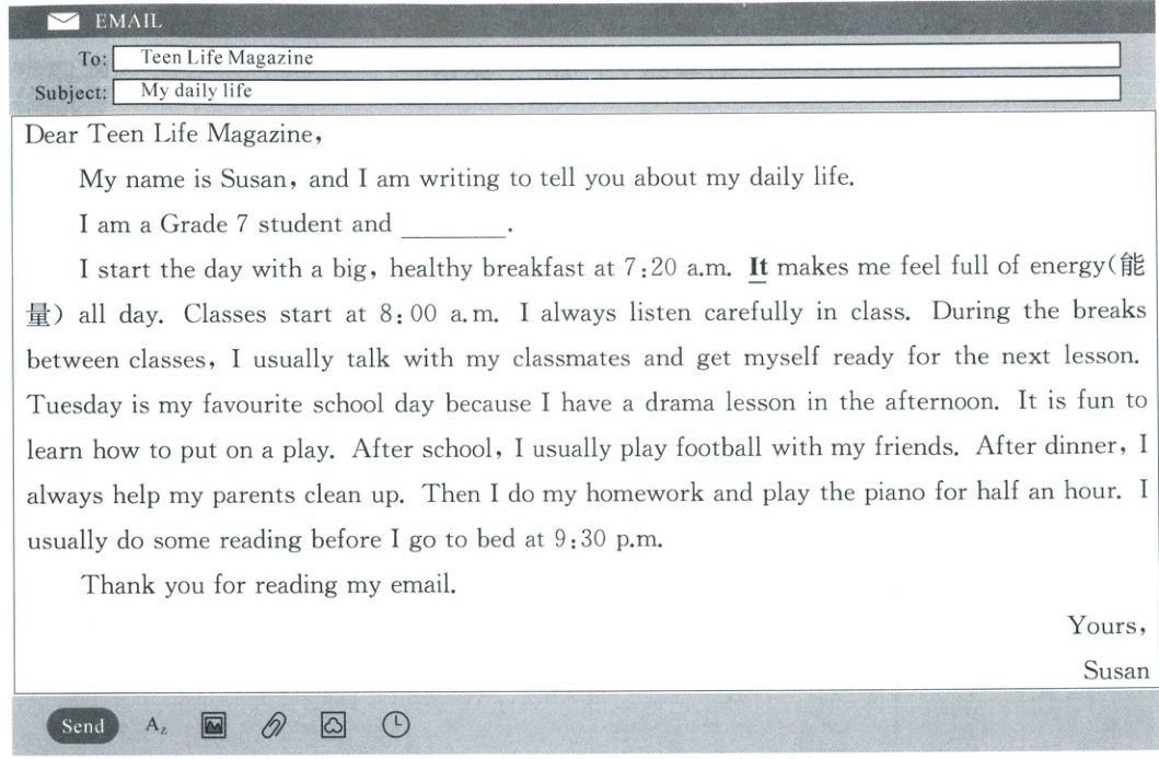 )28. Which of the following can be put into “________”? (下列哪个是可以放入“________”的最佳选项?)A. my school day is very busy