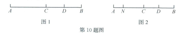 10. (2025·诸暨)如图,线段 AB=18,C 是线段 AB 的中点,D 是线段 BC 的中点.