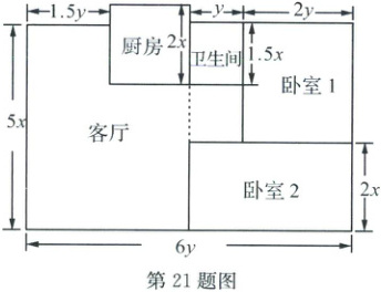 21. (8 分)如图是某住宅的平面结构示意图及有关尺寸(墙壁厚度忽略不计,单位:m).