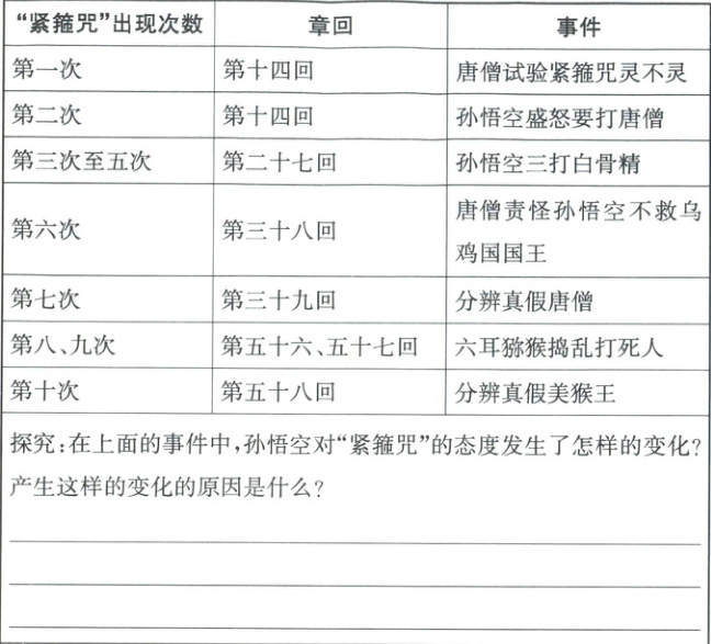 (2)同学们阅读《西游记》时,围绕“紧箍咒”的相关情节展开了精读,制作了下面的阅读笔记,请一起完成。