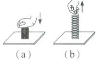 15. 如图(a)(b)所示,在桌面上固定一弹簧,分别用手“压”或“拉”弹簧,由图中现象表明:力可以改变物体的