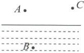 3. (2分)平静水面上方的小鸟和水中的小鱼,某时刻的实际位置$A$、$B$如图所示,$C$点的人恰好看到它们在水中的像$A'$、$B'$重合,请画出小鸟在水中像的位置和人眼看到小鱼的光路图。