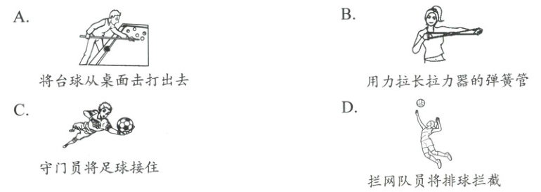 1. 如图所示的运动健身项目中,力的作用效果与其他不同的是(