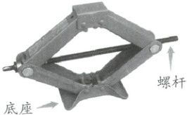4. 如图所示是一种简易千斤顶,转动螺杆将车辆顶起后,关于螺杆和底座的受力分析正确的是(