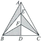 8. 如图,在△ABC中,AB=AC,AD是边BC上的高线(即直线AD是△ABC的对称轴),E,F是AD的三等分点。若△ABC的面积为12 cm²,求图中阴影部分的面积。